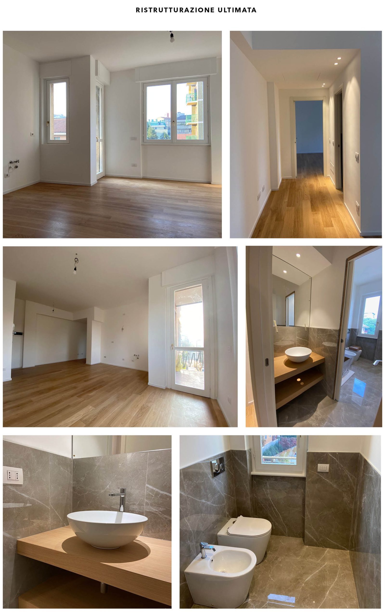 Punti centrali della ristrutturazione sono stati sicuramente l’ampliamento della cucina e la creazione di una master room dalle dimensioni importanti, con una stanza intera adibita a cabina armadio e una vetrata in bagno che fa da cornice ad una vasca idromassaggio di 140x140cm. Abbiamo trasformato lo stile dell’appartamento portandolo da “impersonalizzato” a “classico moderno”, con l’ausilio di boiserie a muro, cornici a soffitto, ed un elegantissimo parquet a doghe grandi ungheresi in finitura noce scuro.
